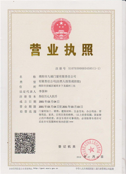 綿陽市九福門窗有限責任公司座落于中國西部美麗的科技城----綿陽。是川內(nèi)研發(fā)生產(chǎn)新型換代,生態(tài)環(huán)保室內(nèi)門和家具的企業(yè)之一。我公司生產(chǎn)的產(chǎn)品,綠色環(huán)保、堅固耐磨,抗擊性高、防潮阻燃、不含苯、不變形,連續(xù)六年經(jīng)四川省綿陽市質(zhì)量技術(shù)監(jiān)督局抽檢合格,符合中華人民共和國行業(yè)標準的各項要求。2011年,被中國產(chǎn)品培育委員會和中國品牌調(diào)查統(tǒng)計中心推介為《質(zhì)量·服務(wù)·信譽AAA企業(yè)》、《中國綠色環(huán)保產(chǎn)品》和《誠信經(jīng)營、消費者滿意產(chǎn)品》;注冊商標“金九福”牌系列產(chǎn)品,在全國品牌評選推廣活動中,經(jīng)中國品牌認證委員會和中國產(chǎn)品質(zhì)量評選中心審核,于2012年2月入選為《中國****品牌》…>>更多 |